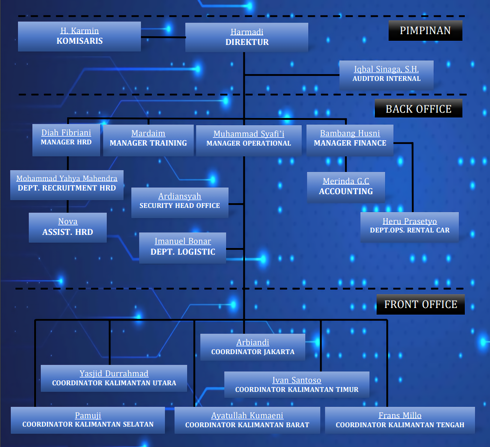 PT.Tekno Putra Perkasa mengadakan gathering family nasional dan merayakan 10 tahun berdirinya perusahaan. Dan membangun branch office di Jakarta. Yang merupakan pusat bisnis di Indonesia, dengan harapan dapat menjangkau klien diseluruh Indonesia.Struktur Organisasi
